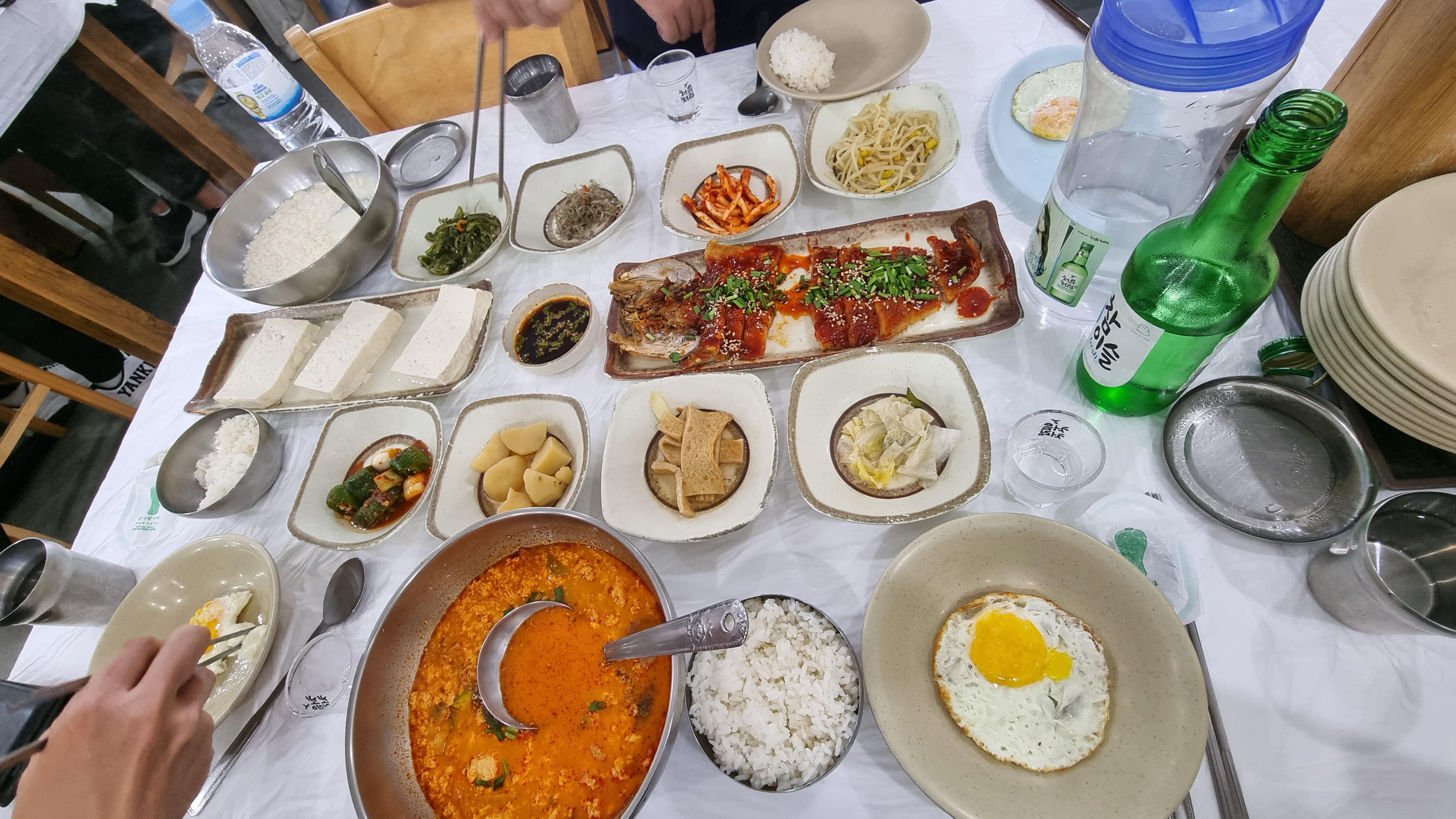 맥주를 마신 뒤 강릉 순두부를 먹으러 갔습니다. 초당 순두부 맛집이라서 초당 순두부찌개, 짬뽕 순두부, 모두부, 황태구이 그리고 소주 한잔! 강릉 경포대 맛집 태백산맥 식당입니다. 가격도 저렴하고, 아주 맛있어요!