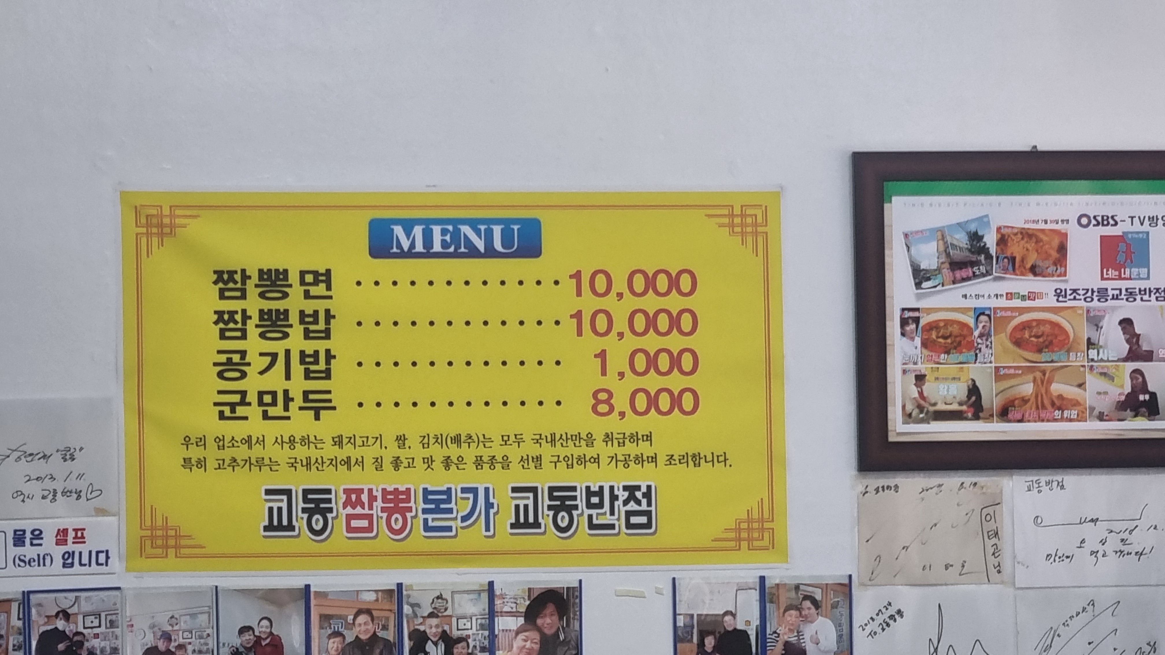 교동 짬뽕 본점 메뉴 가격