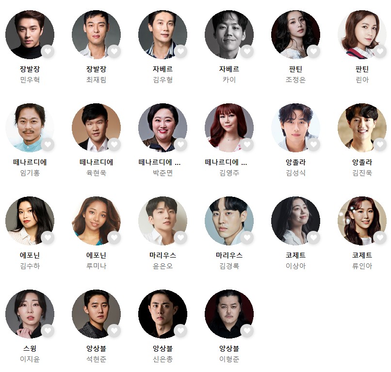 이번 뮤지컬 레미제라블 배우 캐스팅은 지금까지 캐스팅된 모든 배우들 중 최고라고 할 수 있는 배우들이 선발되어 화제입니다. 아래의 표를 통해 캐스팅 배우들을 확인해 보시겠습니다.