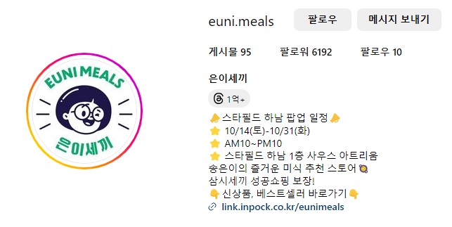또한 EUNI'S CAMPING ZONE을 제공하여 은이와 함께하는 불멍을 즐길 수 있는 이벤트 공간이 제공되며, 통통이 콜라보 베이커리와 은이세끼 자체 기획 상품을 최대 20% 할인가로 제공합니다.