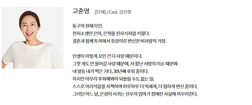동구의 현재 부인 고춘영 역을 맡은 배우 김선경