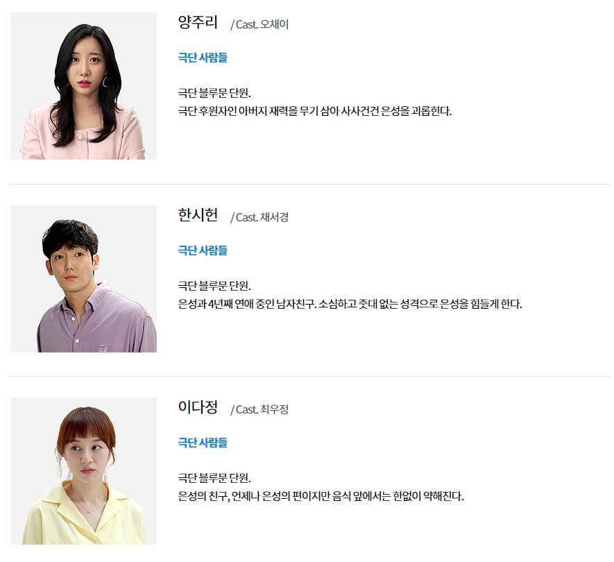 극단 블루문 단원으로 은성을 괴롭히는 양주리 역을 맡은 배우 오채이