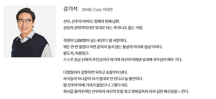 선우, 선주의 아버지 정애의 현재 남편 강기석 역을 맡은 배우 이대연