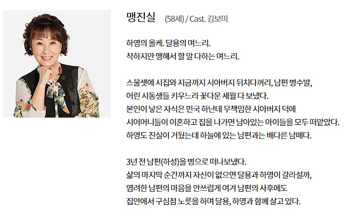 하영의 올케, 달용의 며느리 맹진실 역을 맡은 배우 김보미