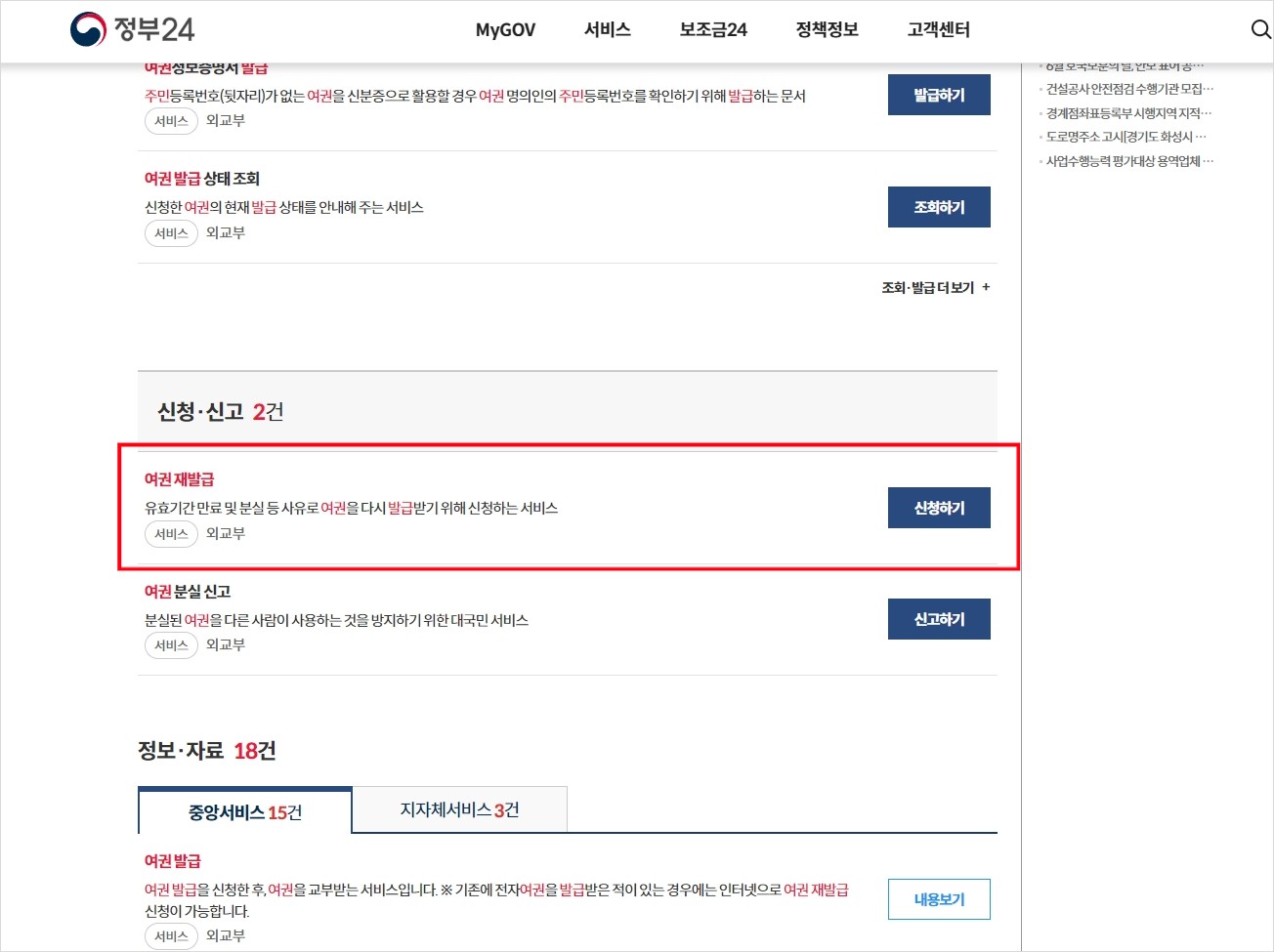 | 방법 | 정부24 여권재발급 신청(아래 버튼 클릭!!!) |