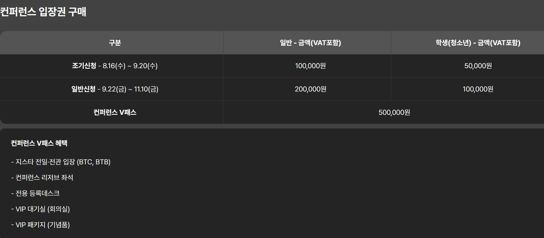 1. 컨퍼런스 입장권은 지스타 행사 전일 BTC 전시장 출입이 가능한 패키지 티켓입니다.